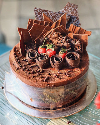 dimana di setiap layernya diisi dengan chocolate ganache hingga ke bagian